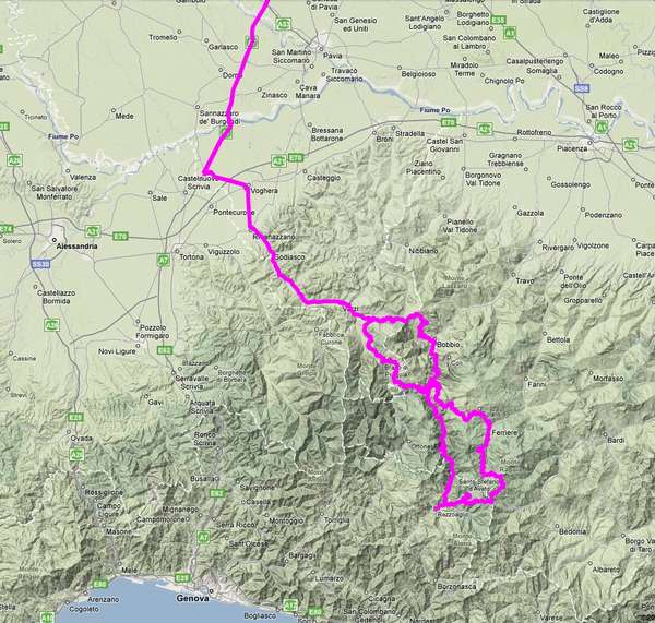 Milano - Casei Gerola - Voghera - Varzi- Passo del Brallo - Marsaglia - Val d'Aveto- Rezzoaglio - Santo Stefano d'Aveto - Ferriere - Marsaglia - Bobbio - Passo del Penice - Varzi - Voghera - Casei Gerola - Milano