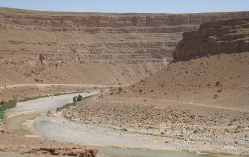 Risaliamo in moto, la strada sale tra rocce e canyons e decidiamo di fermarci al Jurasique. Il posto non è niente di speciale, ma è pulito e garantisce un minimo di confort, ha una piscina con acqua ghiacciata prelevata da un torrente ma soprattutto ci troviamo in mezzo al niente e nel cuore della valle dello Ziz.